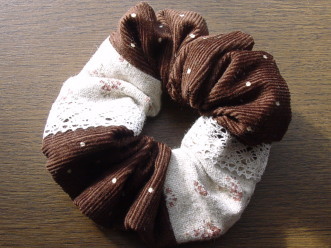 ぬくぬく生地とかわいいお花の生地でシュシュを作りました♪