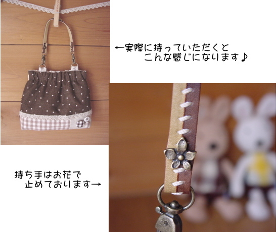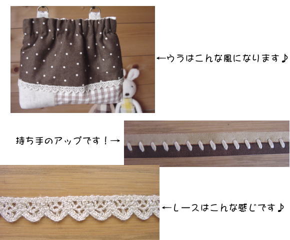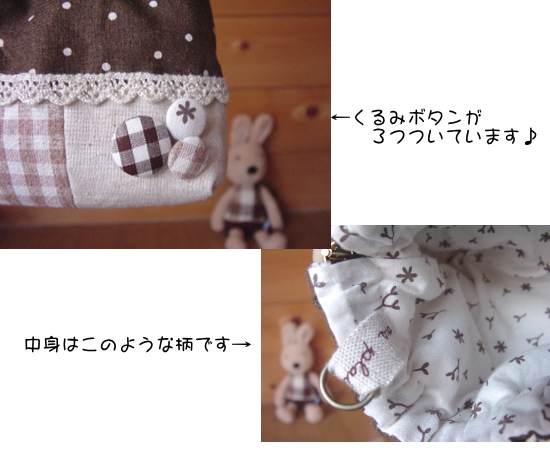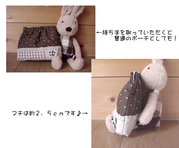 チョコ色の生地をたっぷりと使ったポーチです♪
