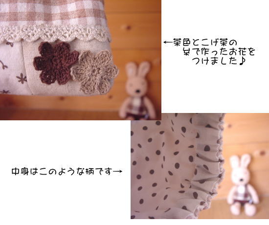 ポイントに茶色の糸で編んだお花のモチーフをつけました!