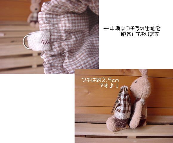 チョコ色の生地をたっぷりと使ったポーチです♪