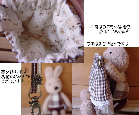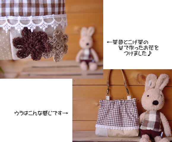 チョコ色の生地をたっぷりと使ったポーチです♪