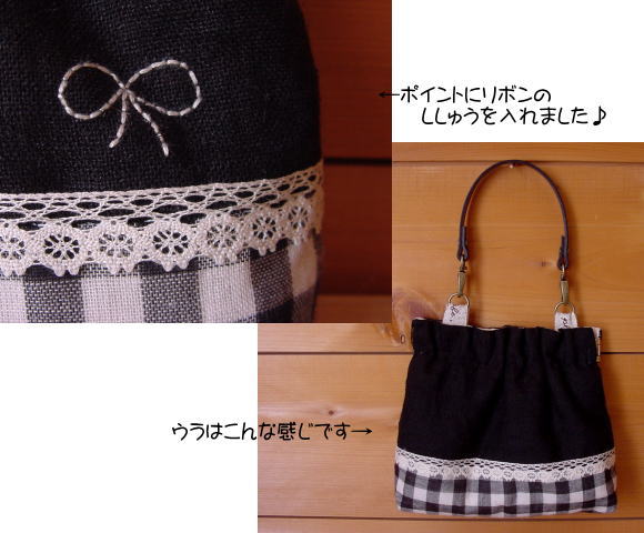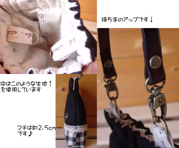 ブラックリネンとダブルガーゼを使ったポーチです♪