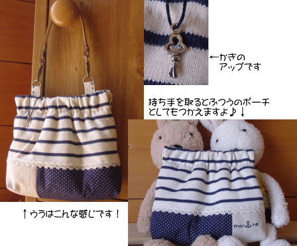 ふわふわのマリン生地で作ったポーチです♪